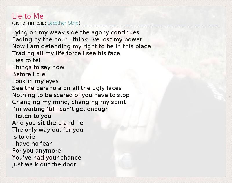 А как ты думаешь, о чем песня "Lie to Me" ?