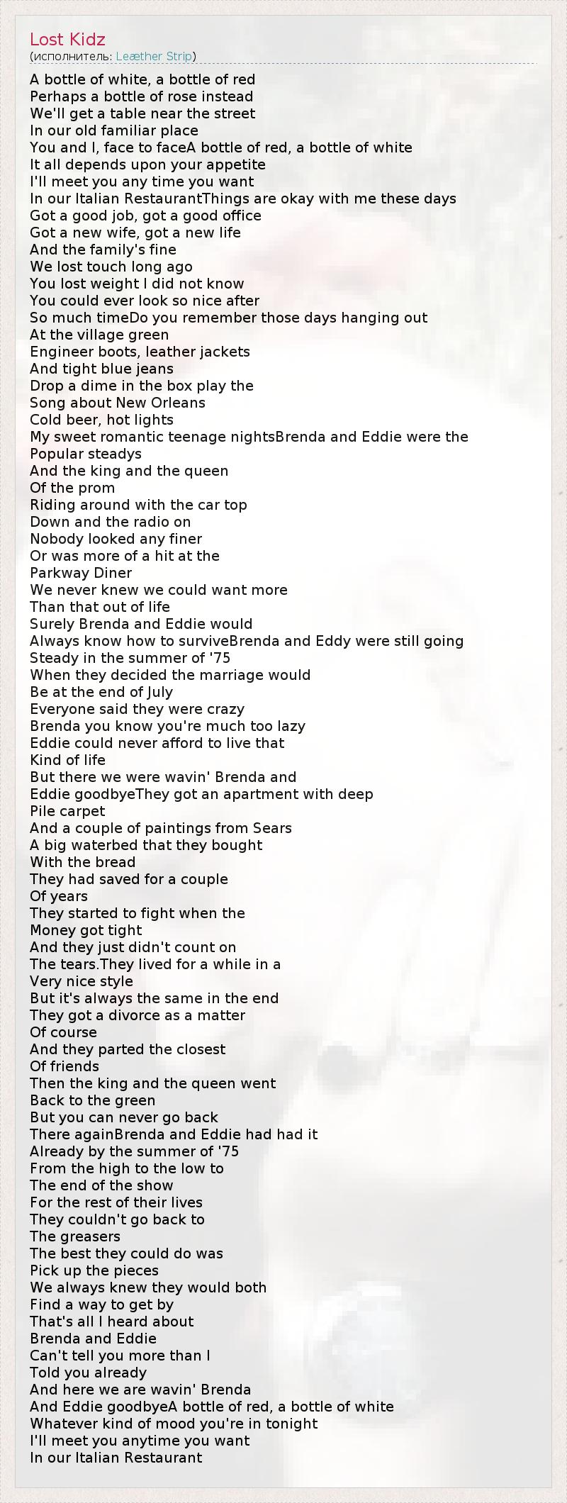 And Eddie goodbyeA bottle of red, a bottle of white