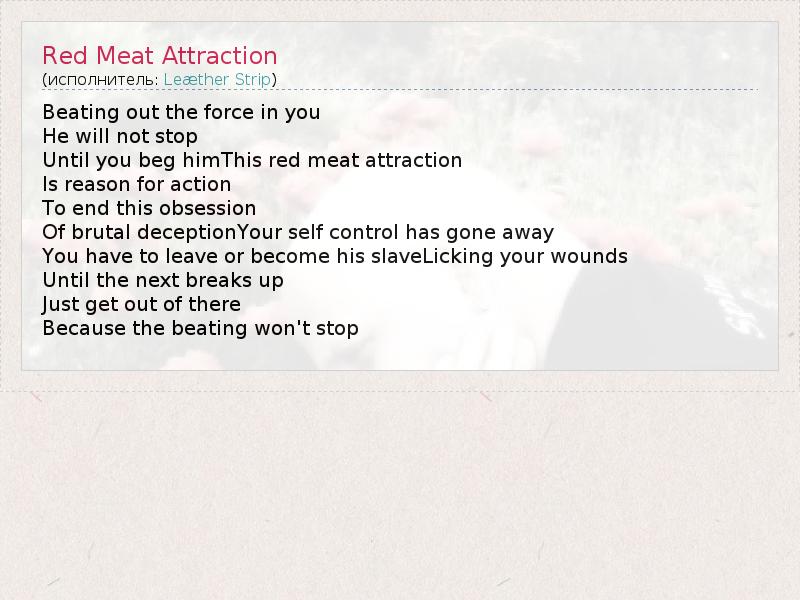 А как ты думаешь, о чем песня "Red Meat Attraction" ?