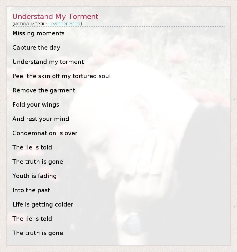 А как ты думаешь, о чем песня "Understand My Torment" ?