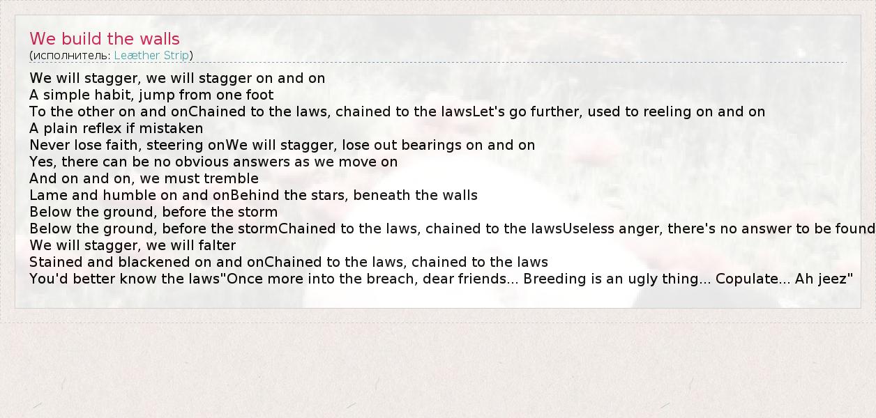 А как ты думаешь, о чем песня "We build the walls" ?