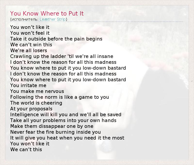 А как ты думаешь, о чем песня "You Know Where to Put It" ?