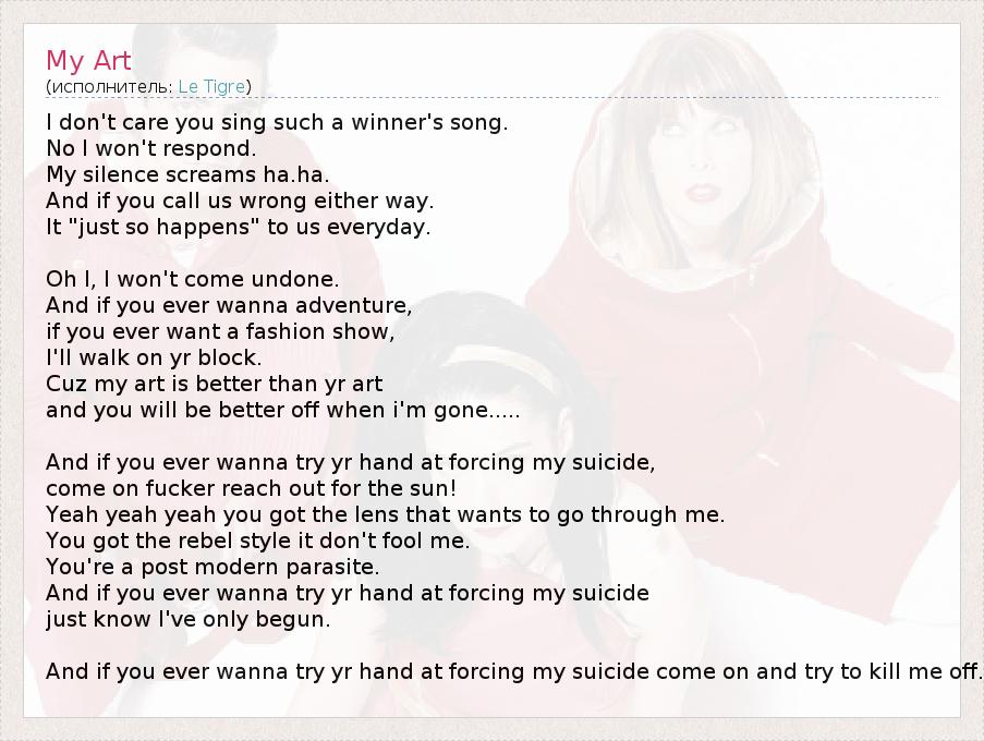 А как ты думаешь, о чем песня "My Art" ?