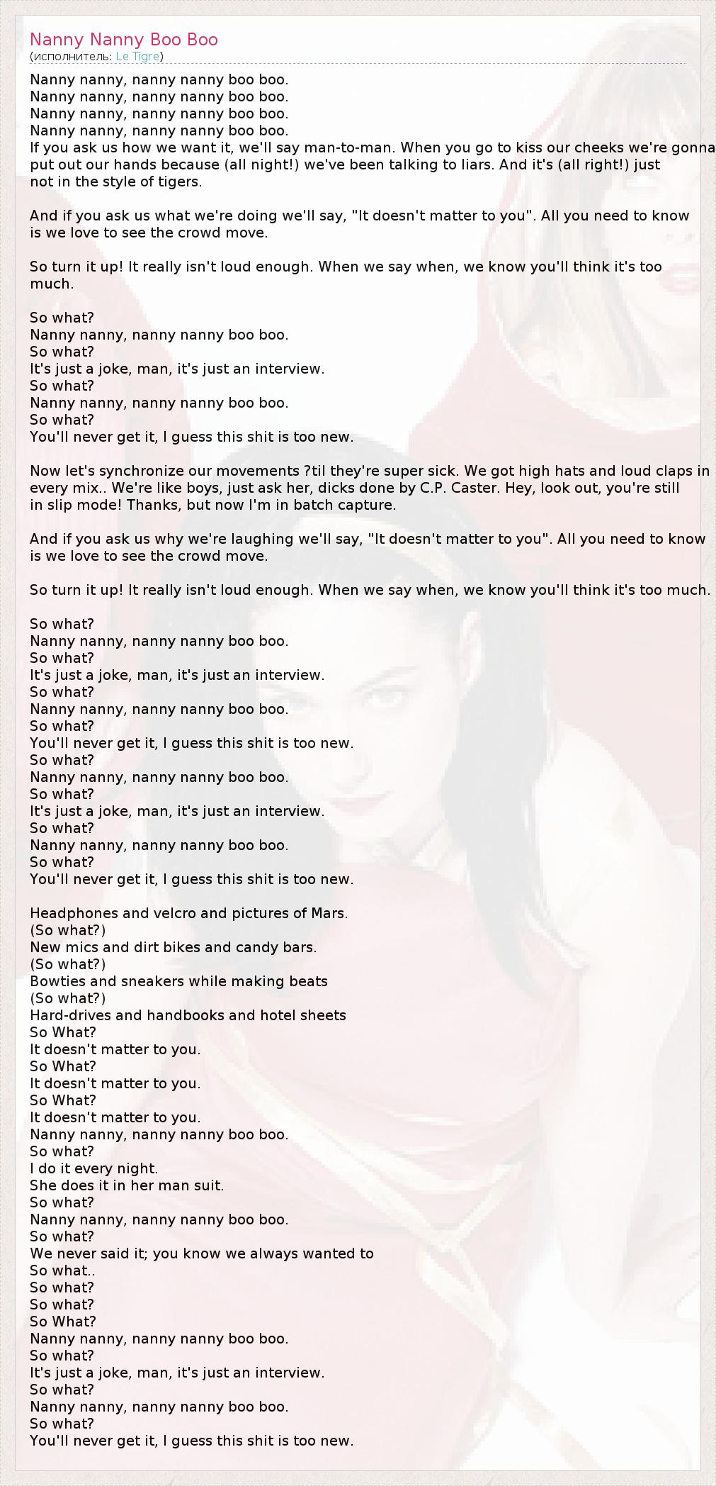 А как ты думаешь, о чем песня "Nanny Nanny Boo Boo" ?