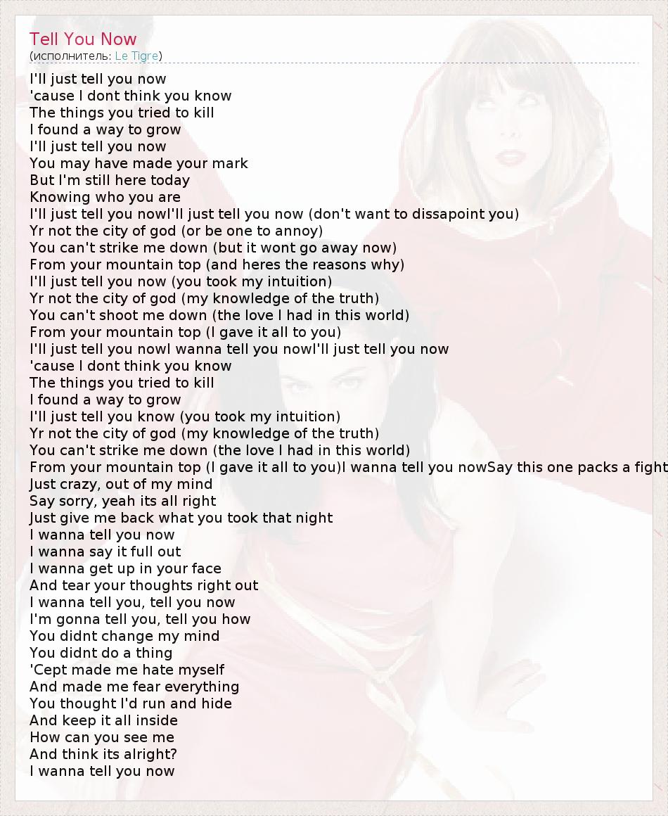 А как ты думаешь, о чем песня "Tell You Now" ?