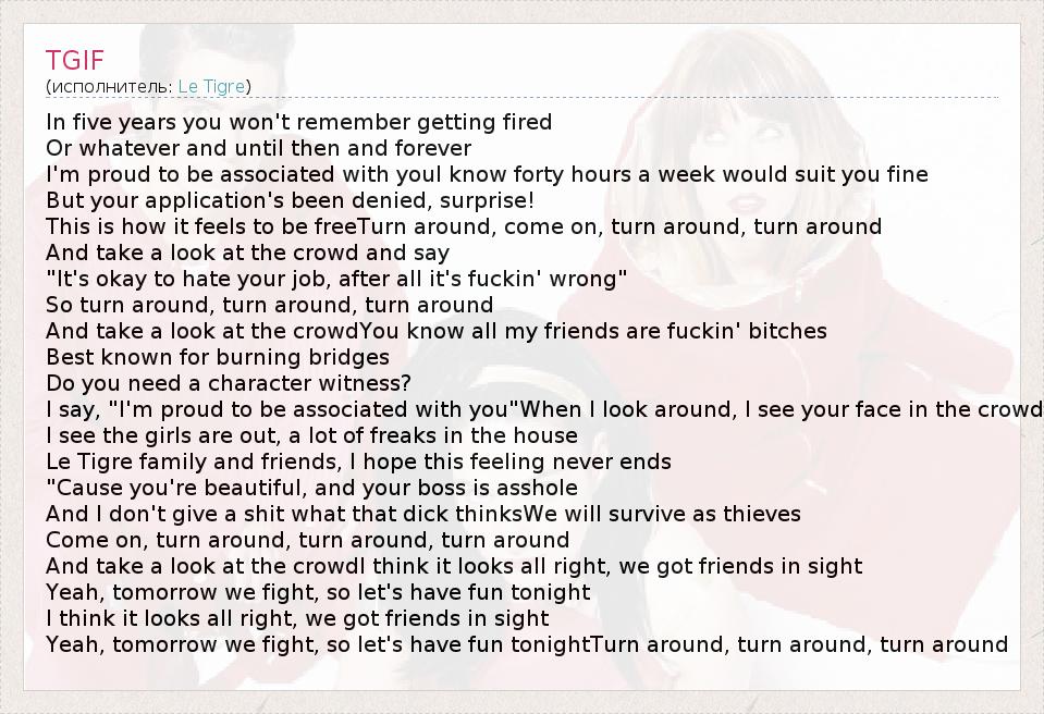Yeah, tomorrow we fight, so let's have fun tonightTurn around, turn around, turn around