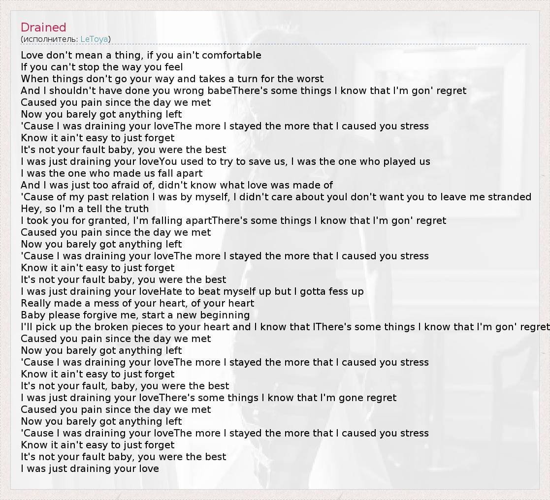 I was just draining your loveYou used to try to save us, I was the one who played us