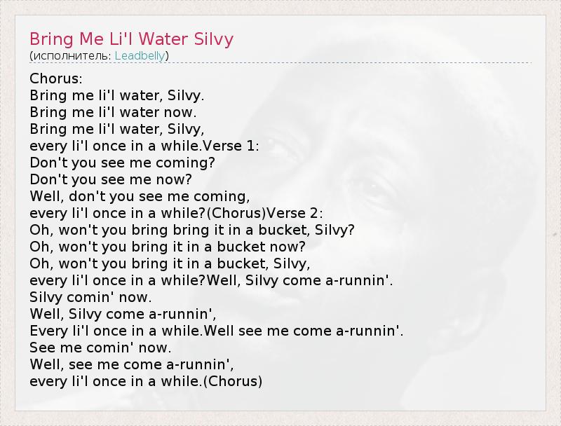 А как ты думаешь, о чем песня "Bring Me Li'l Water Silvy" ?