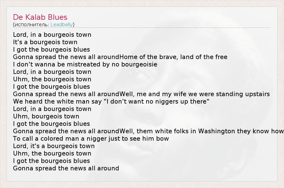 А как ты думаешь, о чем песня "De Kalab Blues" ?