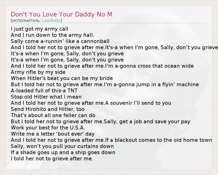 А как ты думаешь, о чем песня "Don't You Love Your Daddy No M" ?