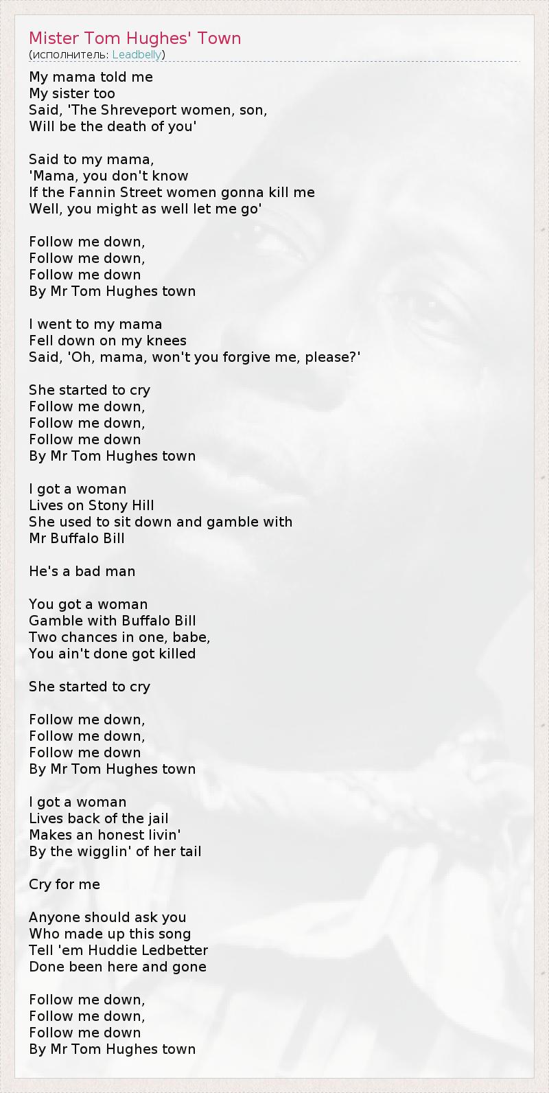 ГлавнаяИсполнителиLeadbellyMister Tom Hughes' Town