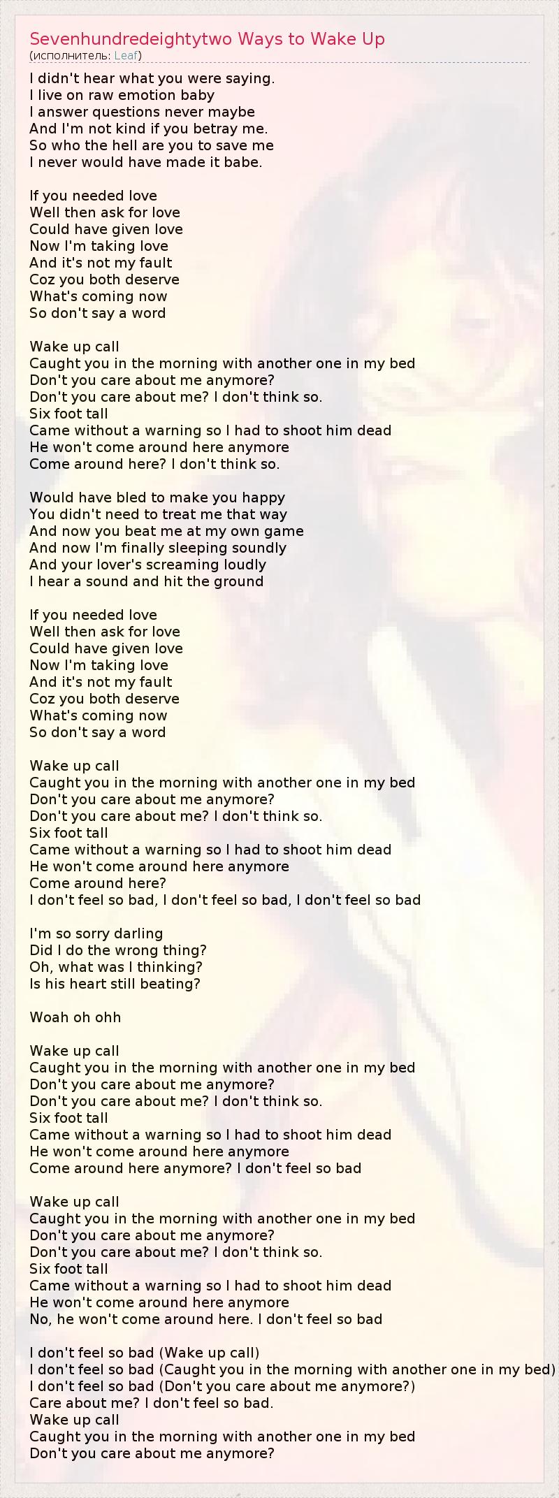 ГлавнаяИсполнителиLeafSevenhundredeightytwo Ways to Wake Up