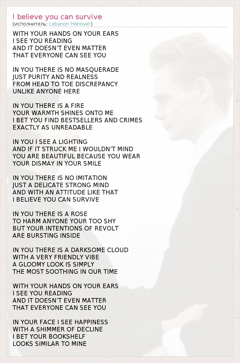ГлавнаяИсполнителиLebanon HanoverI believe you can survive