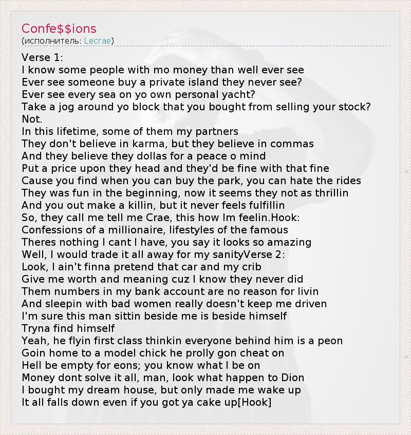 А как ты думаешь, о чем песня "Confe$$ions" ?
