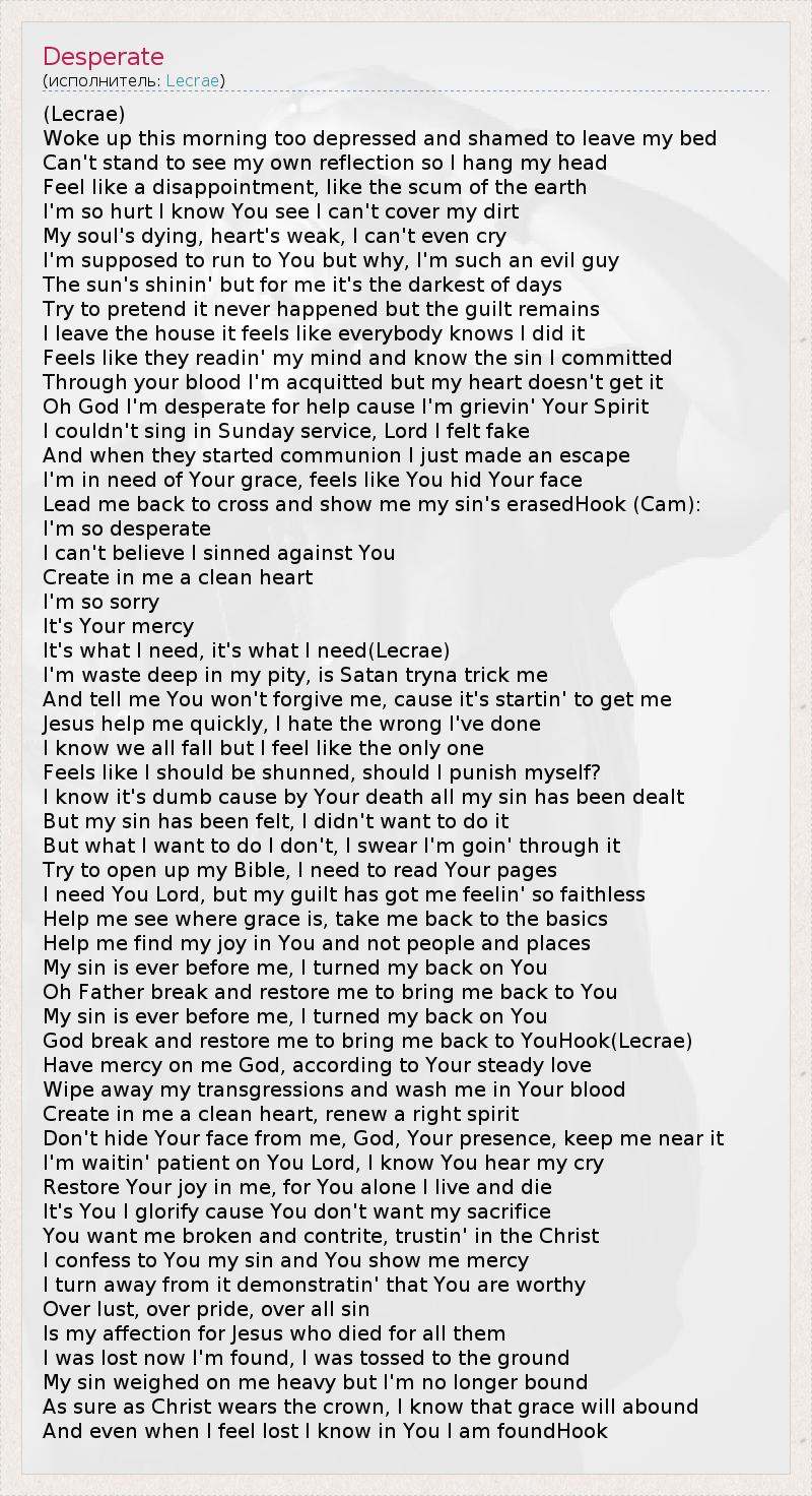 Oh God I'm desperate for help cause I'm grievin' Your Spirit