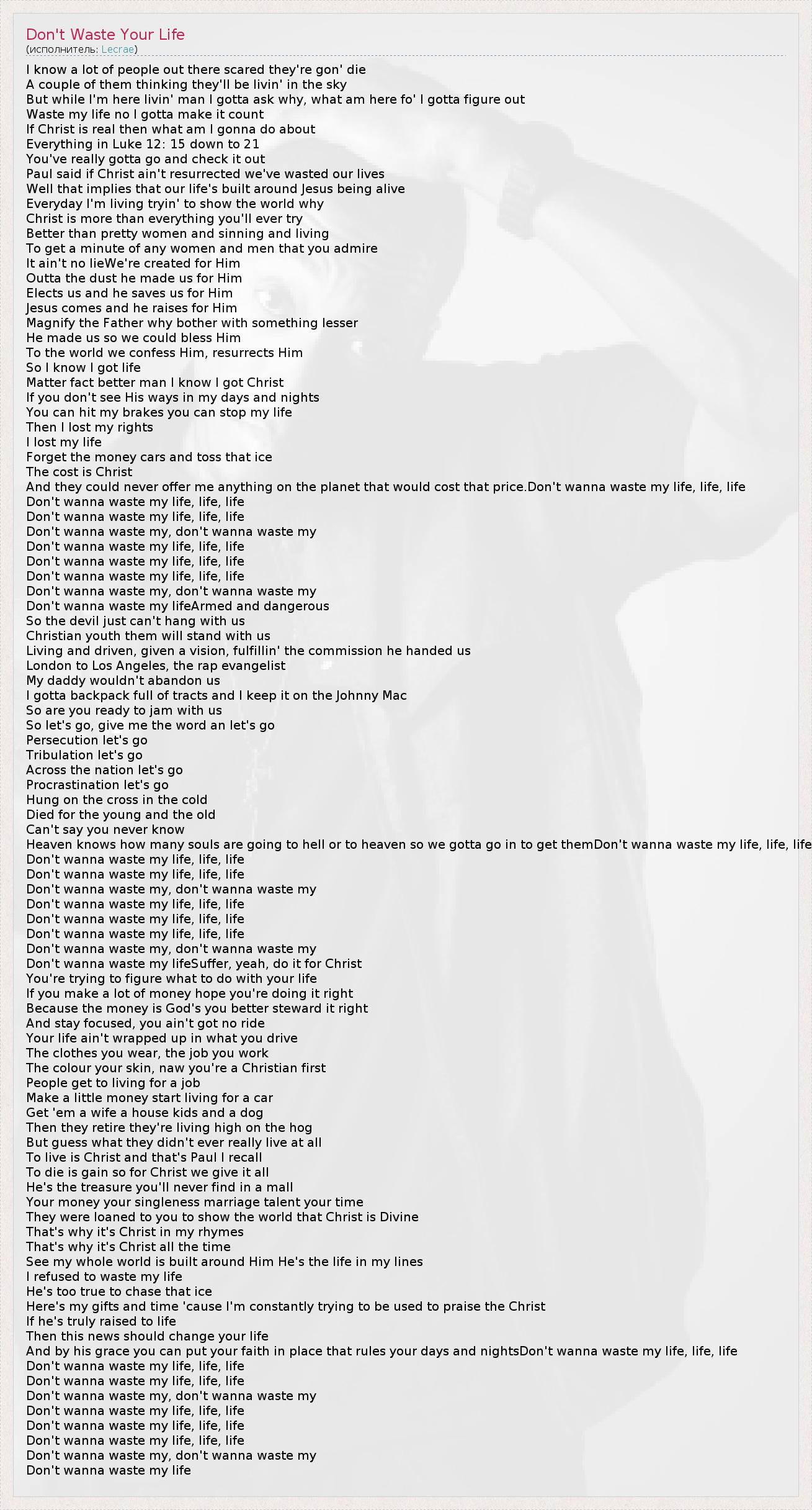ГлавнаяИсполнителиLecraeDon't Waste Your Life