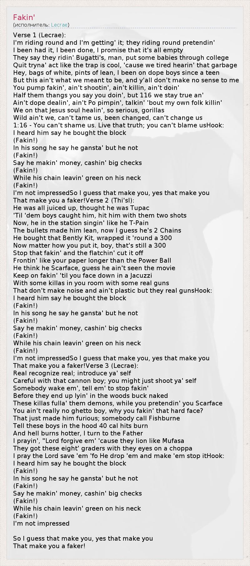 You ain't really no ghetto boy, why you fakin' that hard face?