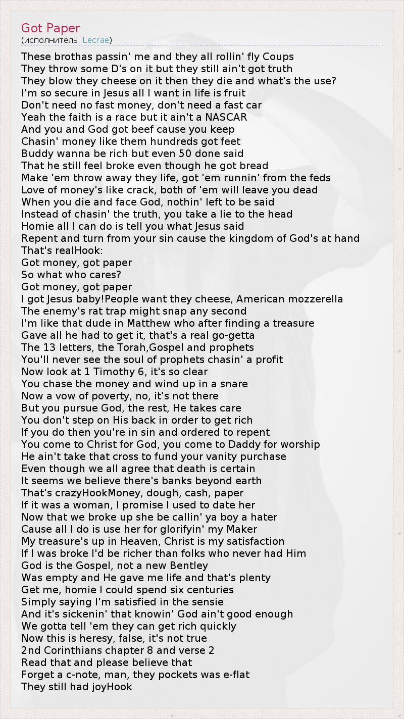 А как ты думаешь, о чем песня "Got Paper" ?