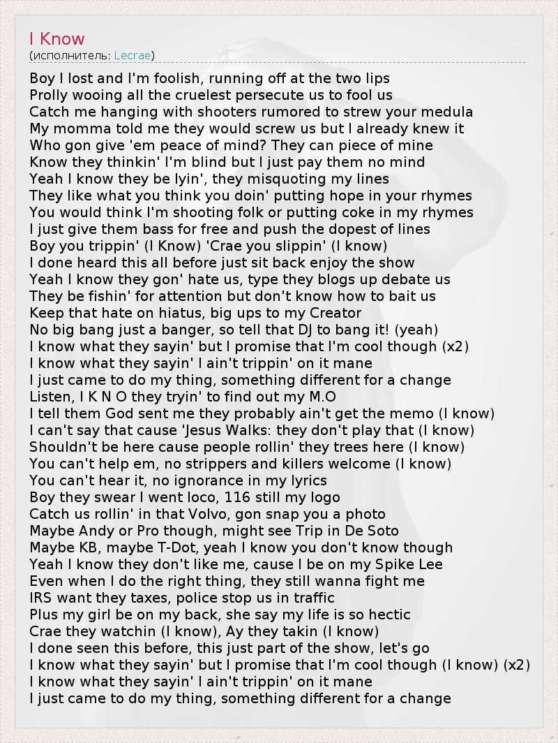Boy you trippin' (I Know) 'Crae you slippin' (I know)