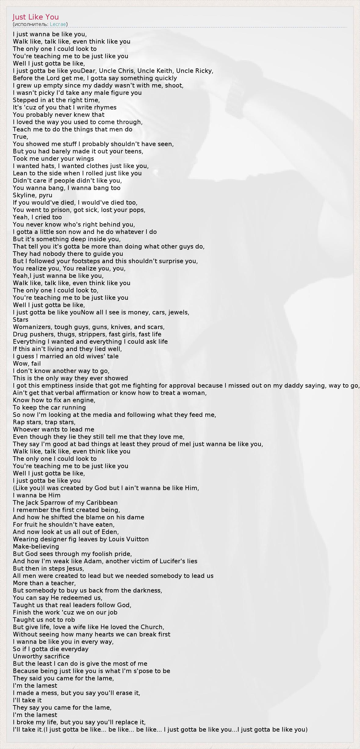 А как ты думаешь, о чем песня "Just Like You" ?