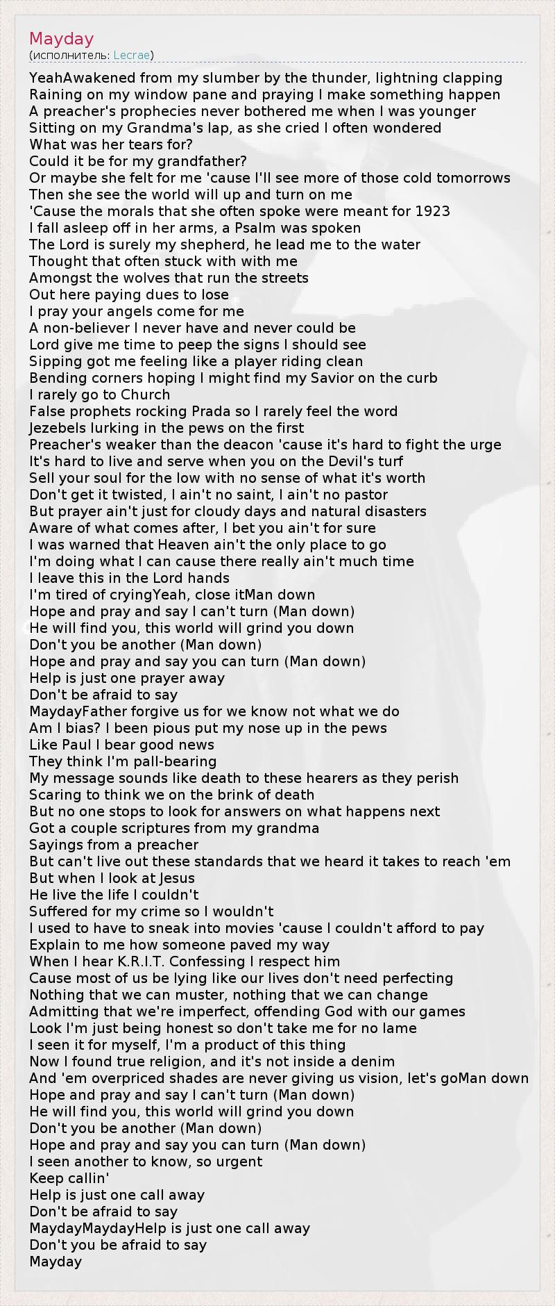 Это интересно:Lecrae Moore was born in the south side of Houston, Texas, but lived most of his youth in Denver and San Diego. He currently resides in Memphis, Tennessee. Lecrae provides a southern rap style to Cross Movement. After realizing that he was living a "lifestyle of excessive sin," Lecrae gave his life to Christ at the age of 19. Though rapping was only a hobby to him, Lecrae's lyrics began to reflect his new life in Christ. After being highly influenced by the Cross Movement and being discipled by local seminary students, Lecrae began to use his music for ministry purposes. He has now made Dallas his local mission field. If he's not hosting hip-hop-oriented youth events in the heart... продолжение