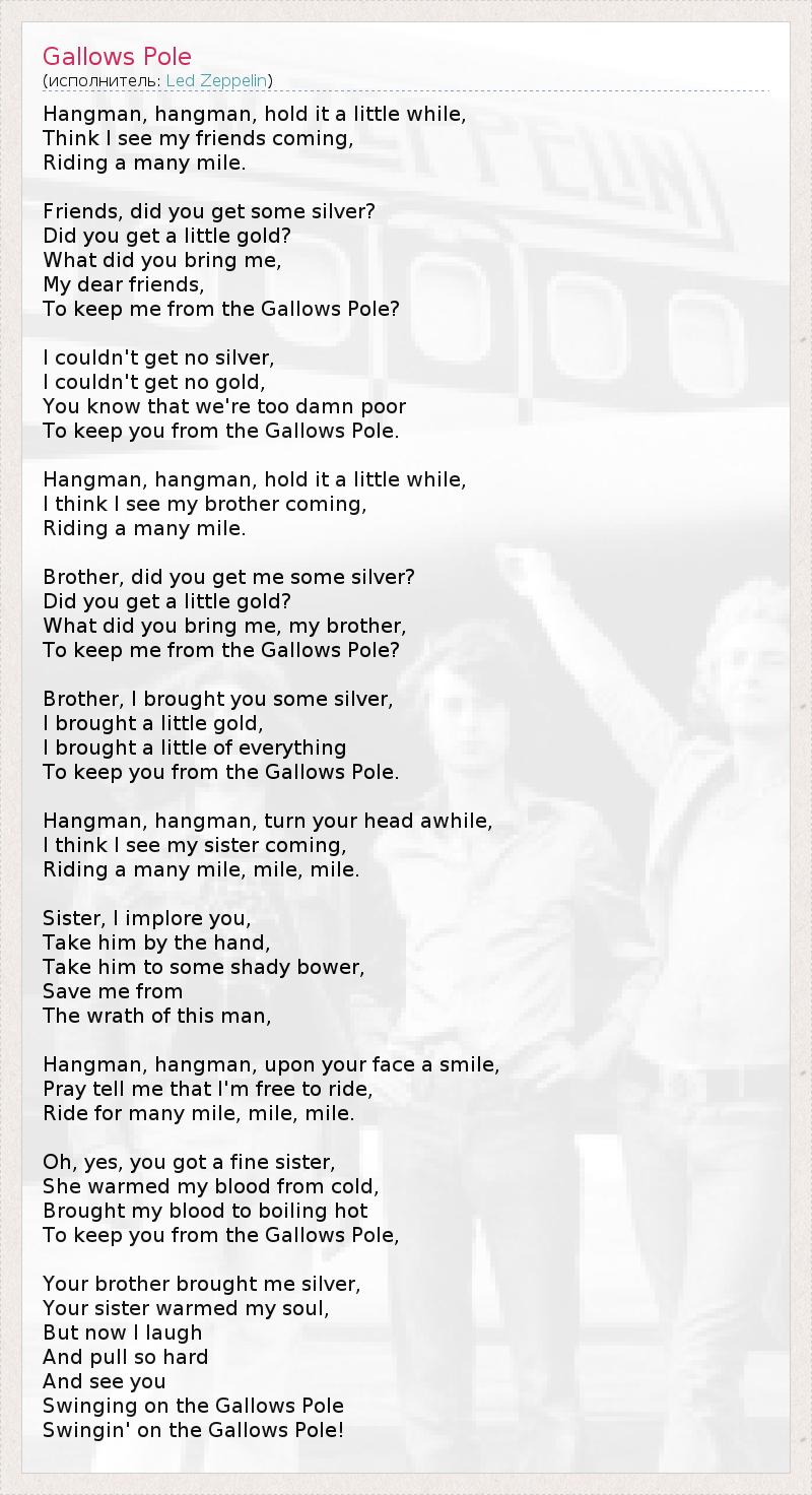 А как ты думаешь, о чем песня "Gallows Pole" ?