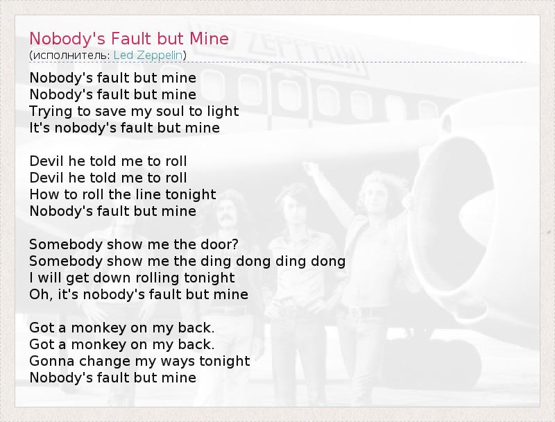 А как ты думаешь, о чем песня "Nobody's Fault but Mine" ?