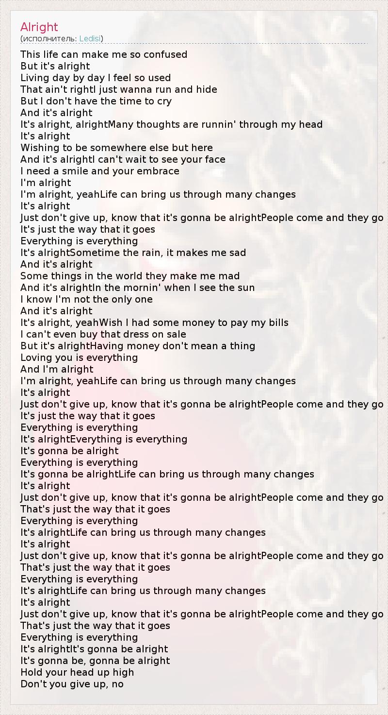 Just don't give up, know that it's gonna be alrightPeople come and they go