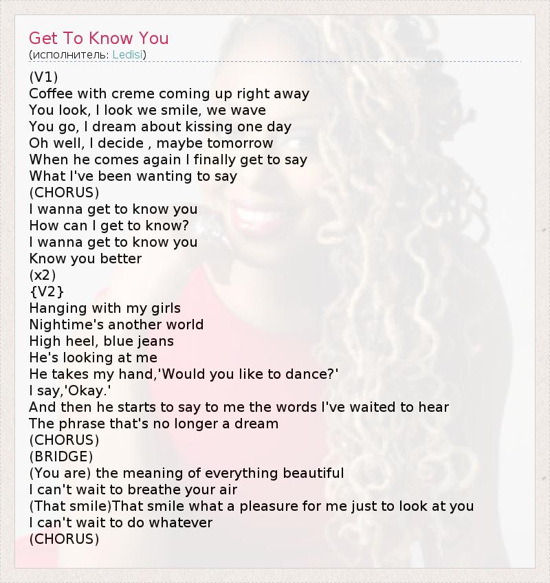 А как ты думаешь, о чем песня "Get To Know You" ?