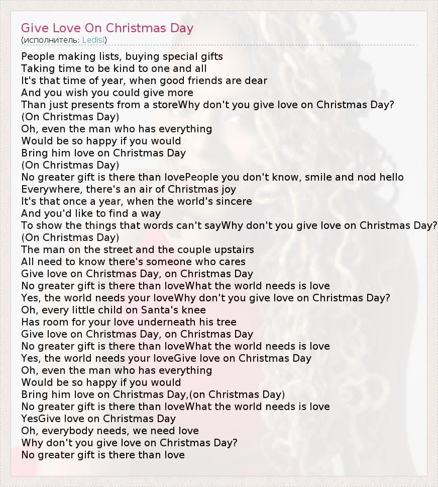 To show the things that words can't sayWhy don't you give love on Christmas Day?