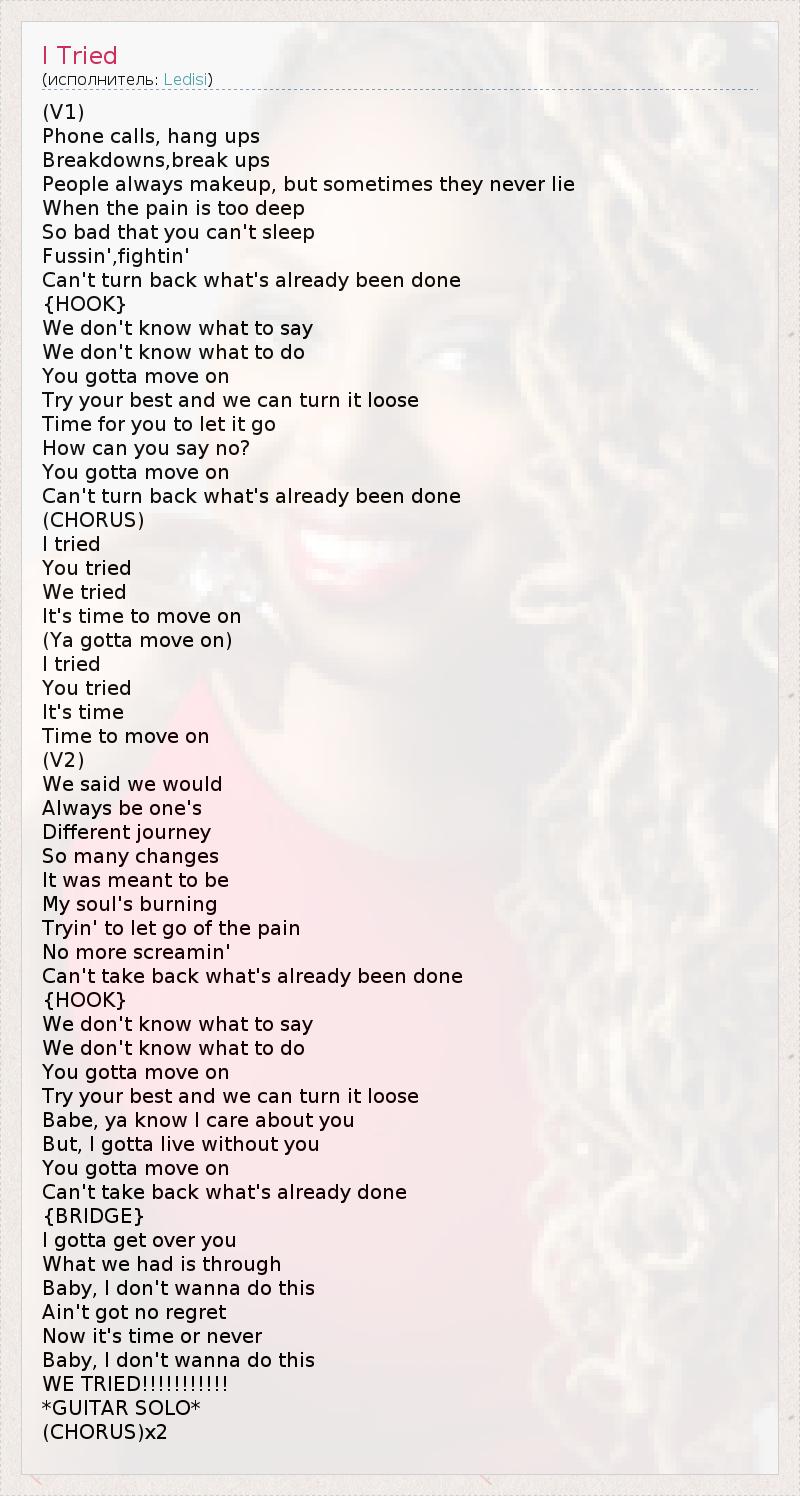 А как ты думаешь, о чем песня "I Tried" ?