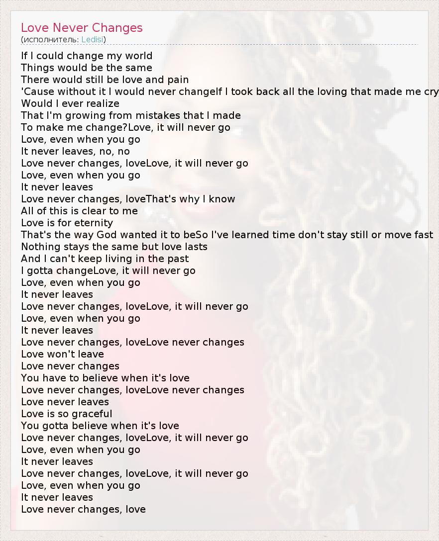 А как ты думаешь, о чем песня "Love Never Changes" ?