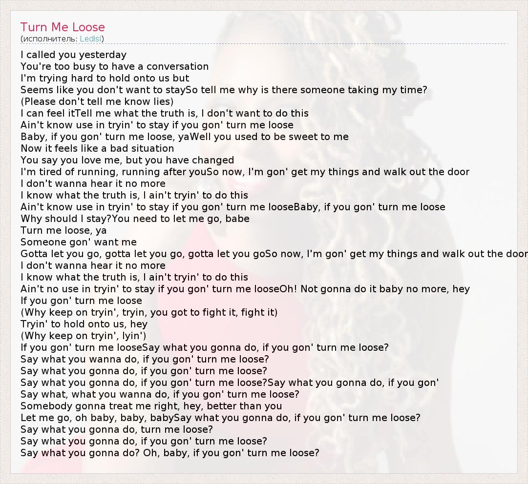 А как ты думаешь, о чем песня "Turn Me Loose" ?