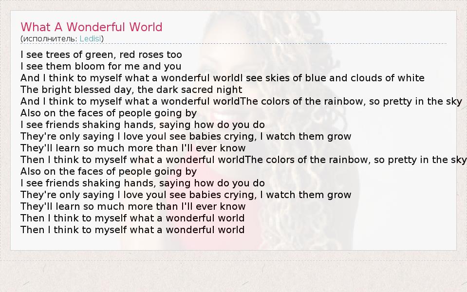 ГлавнаяИсполнителиLedisiWhat A Wonderful World