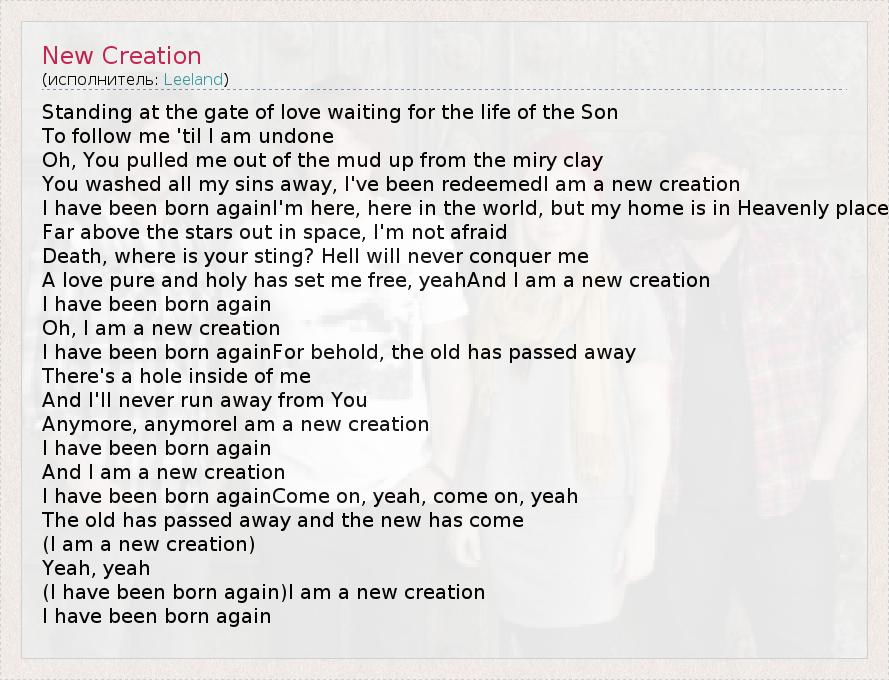 I have been born againI'm here, here in the world, but my home is in Heavenly place