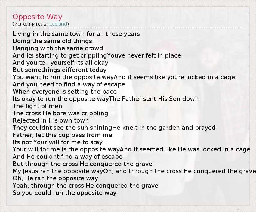 А как ты думаешь, о чем песня "Opposite Way" ?