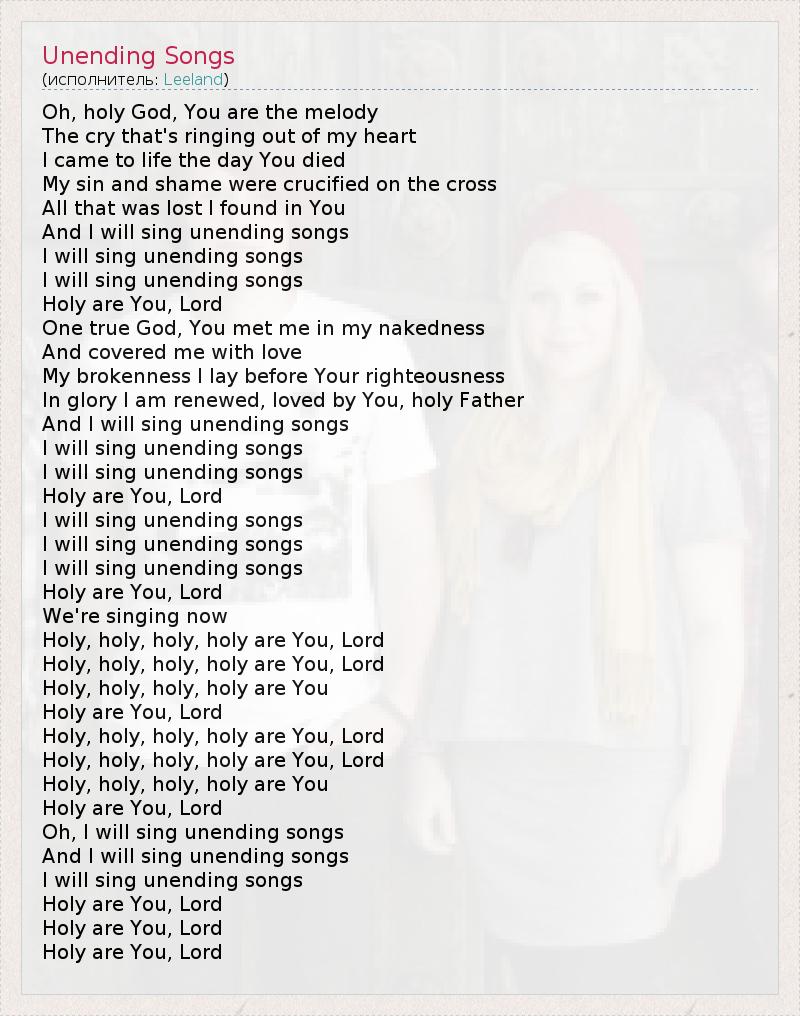 And I will sing unending songs