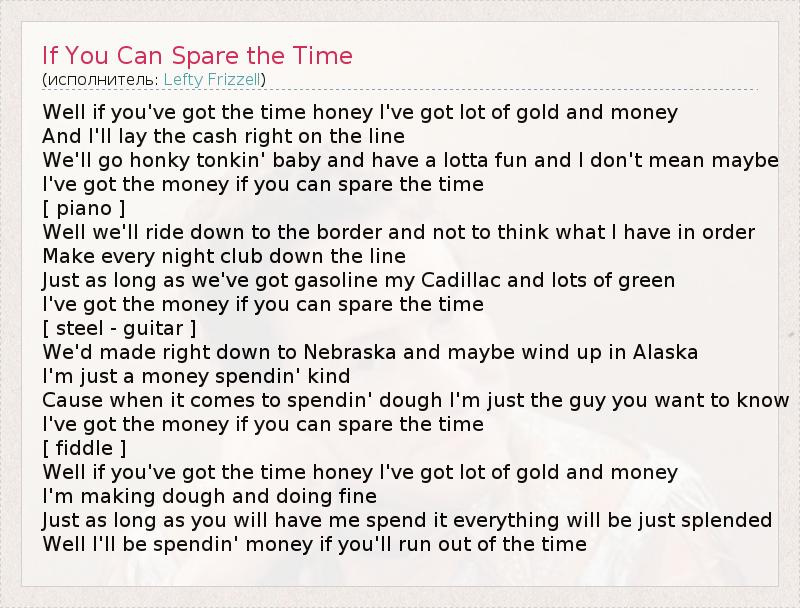 А как ты думаешь, о чем песня "If You Can Spare the Time" ?