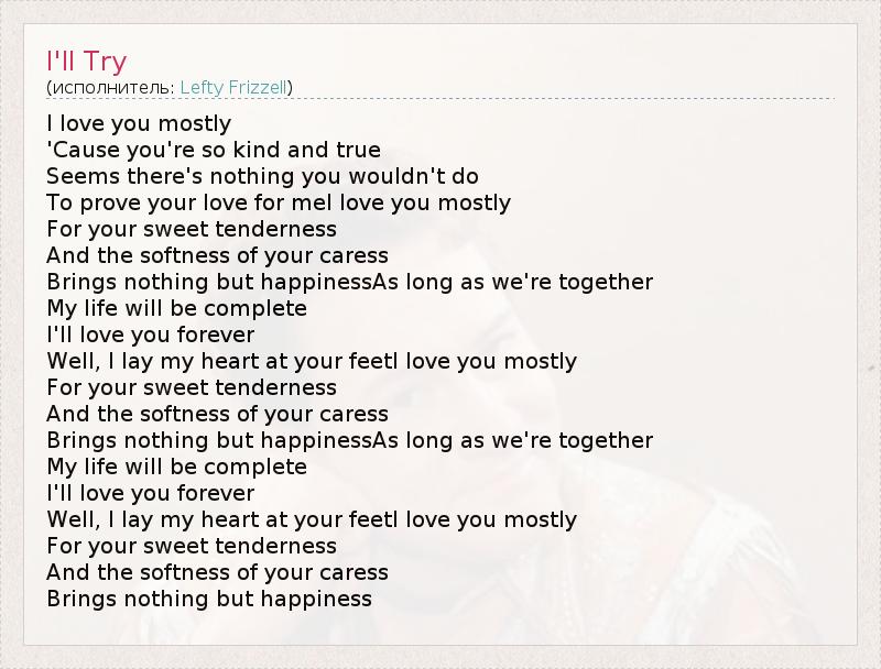 А как ты думаешь, о чем песня "I'll Try" ?