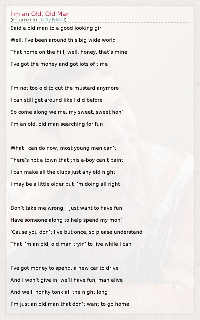 А как ты думаешь, о чем песня "I'm an Old, Old Man" ?