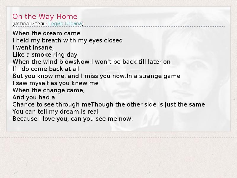 А как ты думаешь, о чем песня "On the Way Home" ?