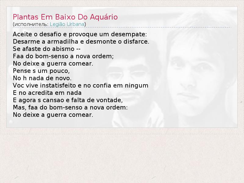 А как ты думаешь, о чем песня "Plantas Em Baixo Do Aquário" ?
