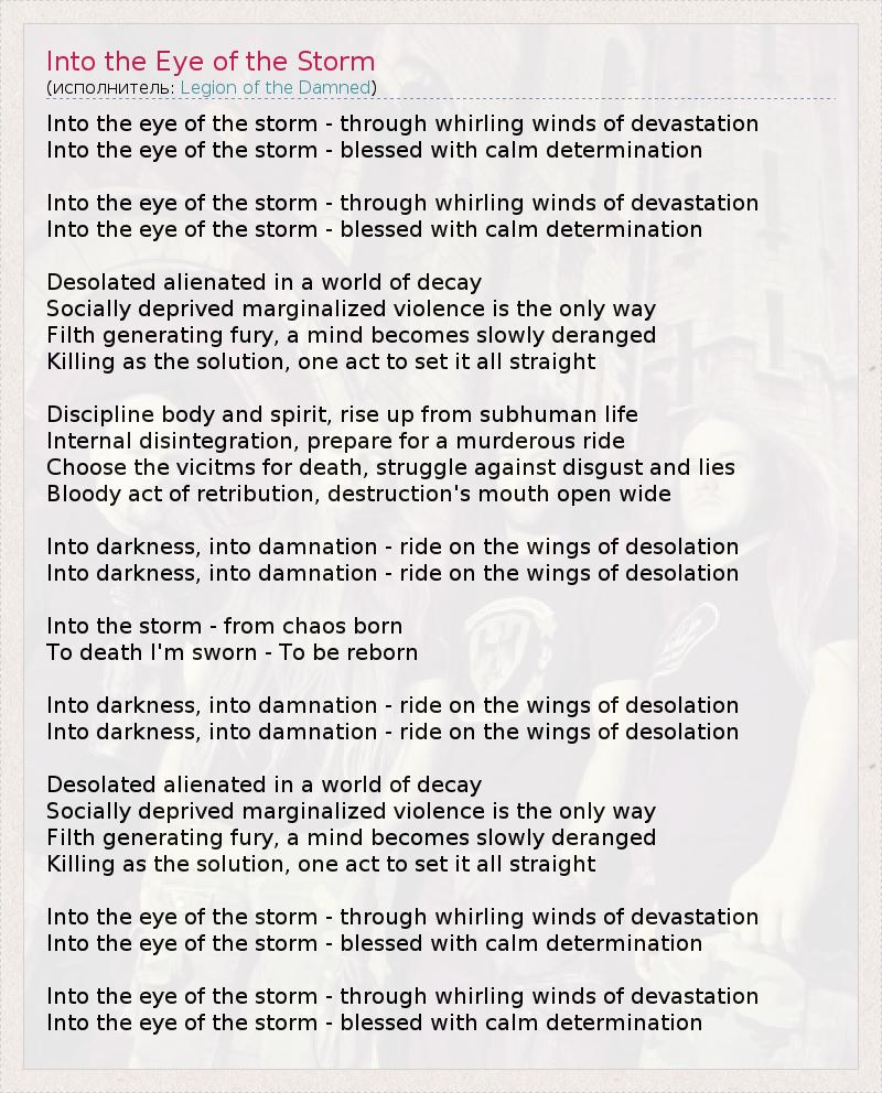 А как ты думаешь, о чем песня "Into the Eye of the Storm" ?