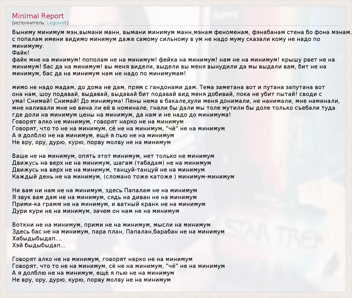 А как ты думаешь, о чем песня "Minimal Report" ?