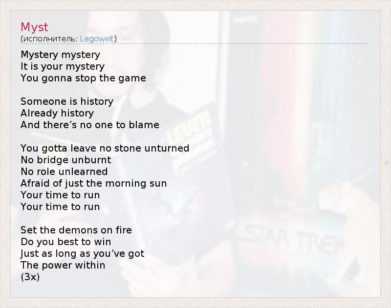 А как ты думаешь, о чем песня "Myst" ?