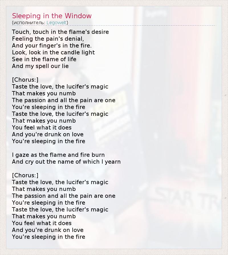 А как ты думаешь, о чем песня "Sleeping in the Window" ?