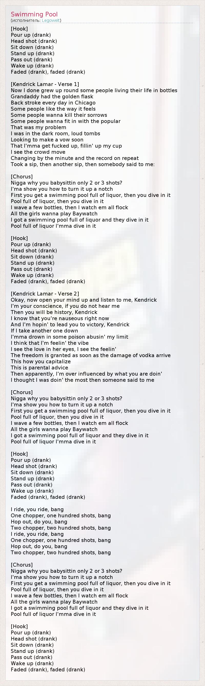 А как ты думаешь, о чем песня "Swimming Pool" ?