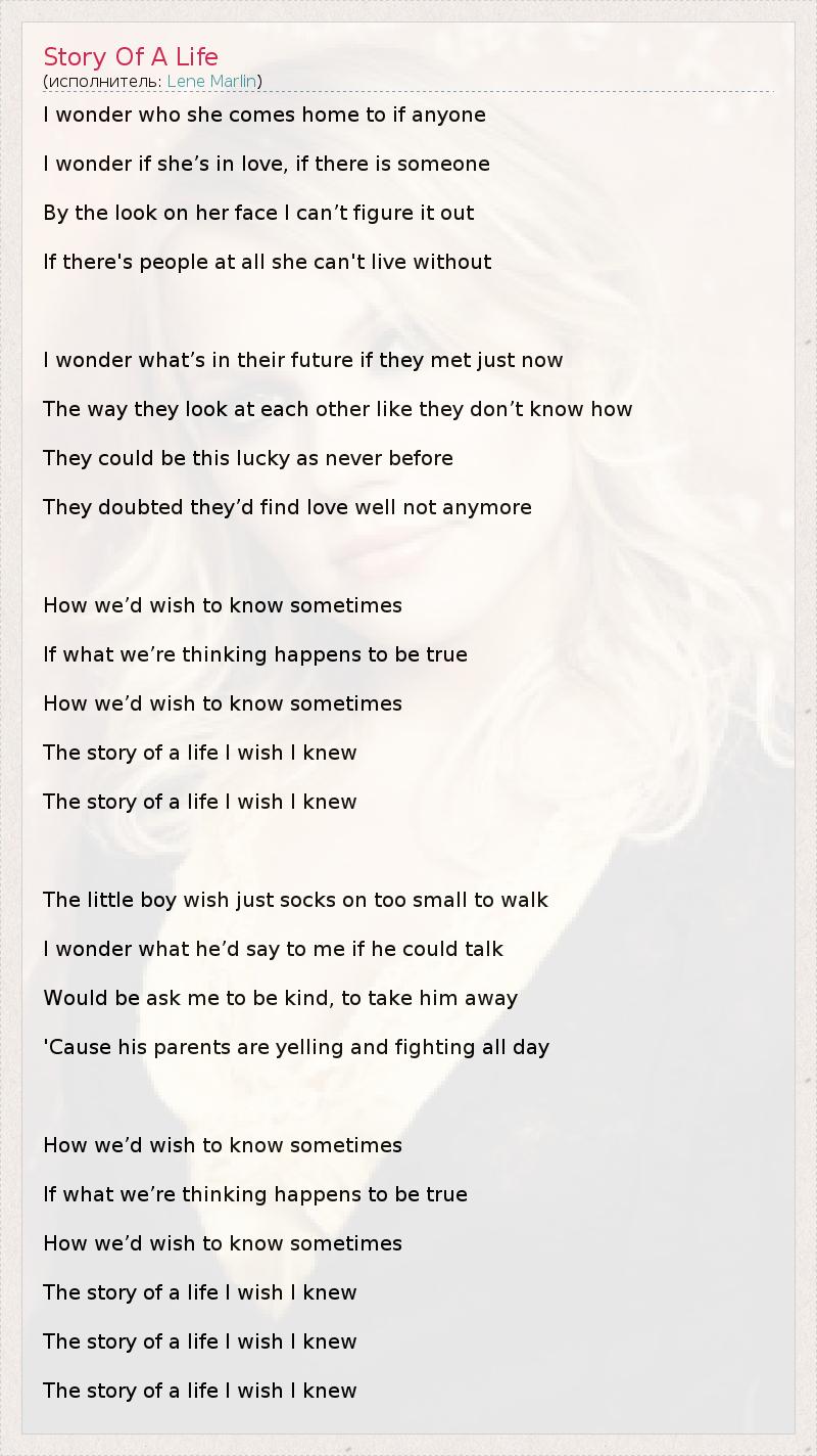 А как ты думаешь, о чем песня "Story Of A Life" ?