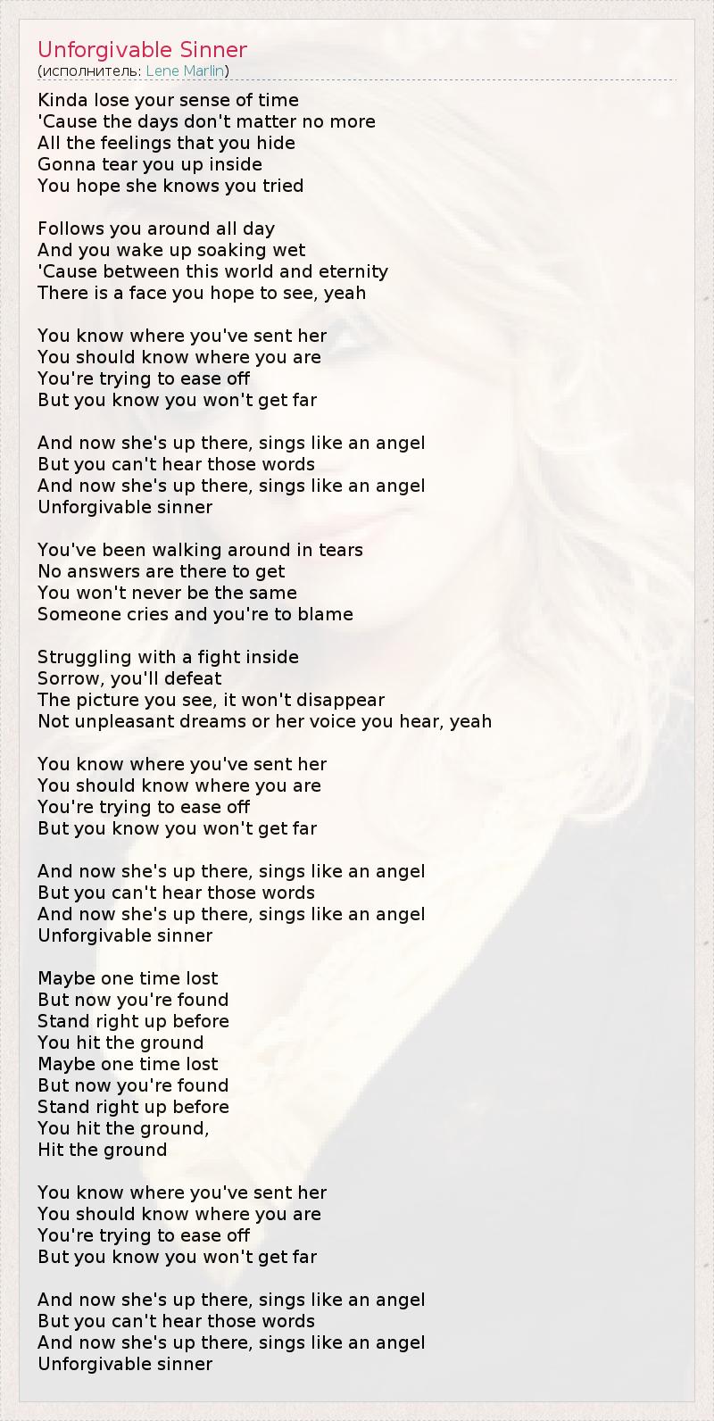 А как ты думаешь, о чем песня "Unforgivable Sinner" ?