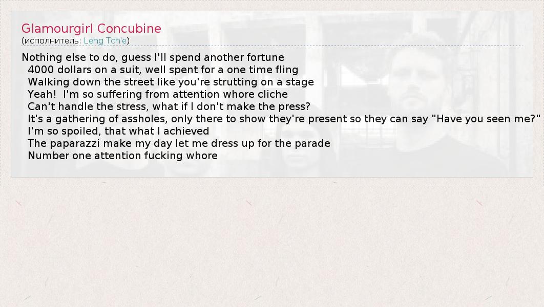 А как ты думаешь, о чем песня "Glamourgirl Concubine" ?